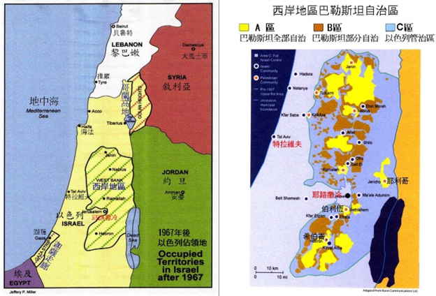 12.State of Israel (1948–Present): Since Israel’s declaration of independence on May 14, 1948, it has experienced several Arab-Israeli wars and peace agreements. Its current de facto administered area is 25,740 square kilometers, which includes the Golan Heights and the region of the former Kingdom of Jordan west of the river (i.e., the West Bank; see image below left). Furthermore, Israel grants three different levels and degrees of autonomy to the Palestinian people living in the West Bank and Gaza Strip (see image below right).