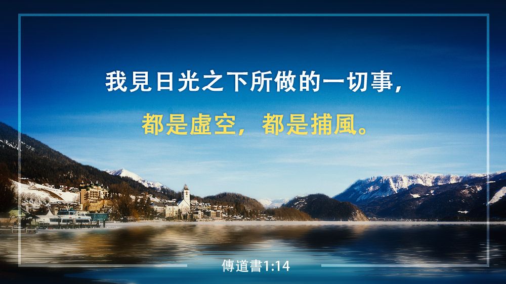 所羅門王的財寶與智慧勝過天下的列王,也知道自己的結局,所以說「我轉想我在日光之下所勞碌的一切工作,心便絕望。因為人用智慧、知識、靈巧所勞碌得來的,卻要留給未曾勞碌的人為分。這也是虛空,也是大患」(傳2:20-21)。但有智慧的所羅門,卻不能照著智慧去行;神賜給他聰明智慧和富足、尊榮,讓他經歷了一切、擁有了一切,最後才發現這些全是「虛空的虛空,虛空的虛空,凡事都是虛空」(傳1:2),最後所羅門才總結出真正的智慧:「敬畏神,謹守祂的誡命,這是人所當盡的本分」(傳12:13)。